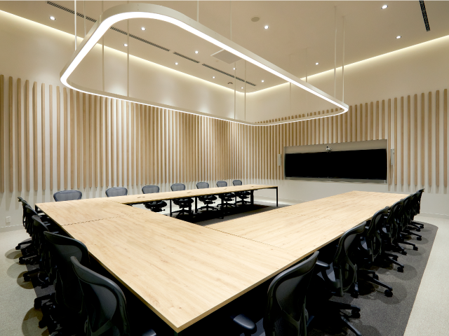 世界有数の自動車シートメーカー、ADIENTのオフィスとミーティングスペース。未来的な雰囲気でありながら、自然で持続可能な空間は、リーディングカンパニーの明るい未来を予感させます。